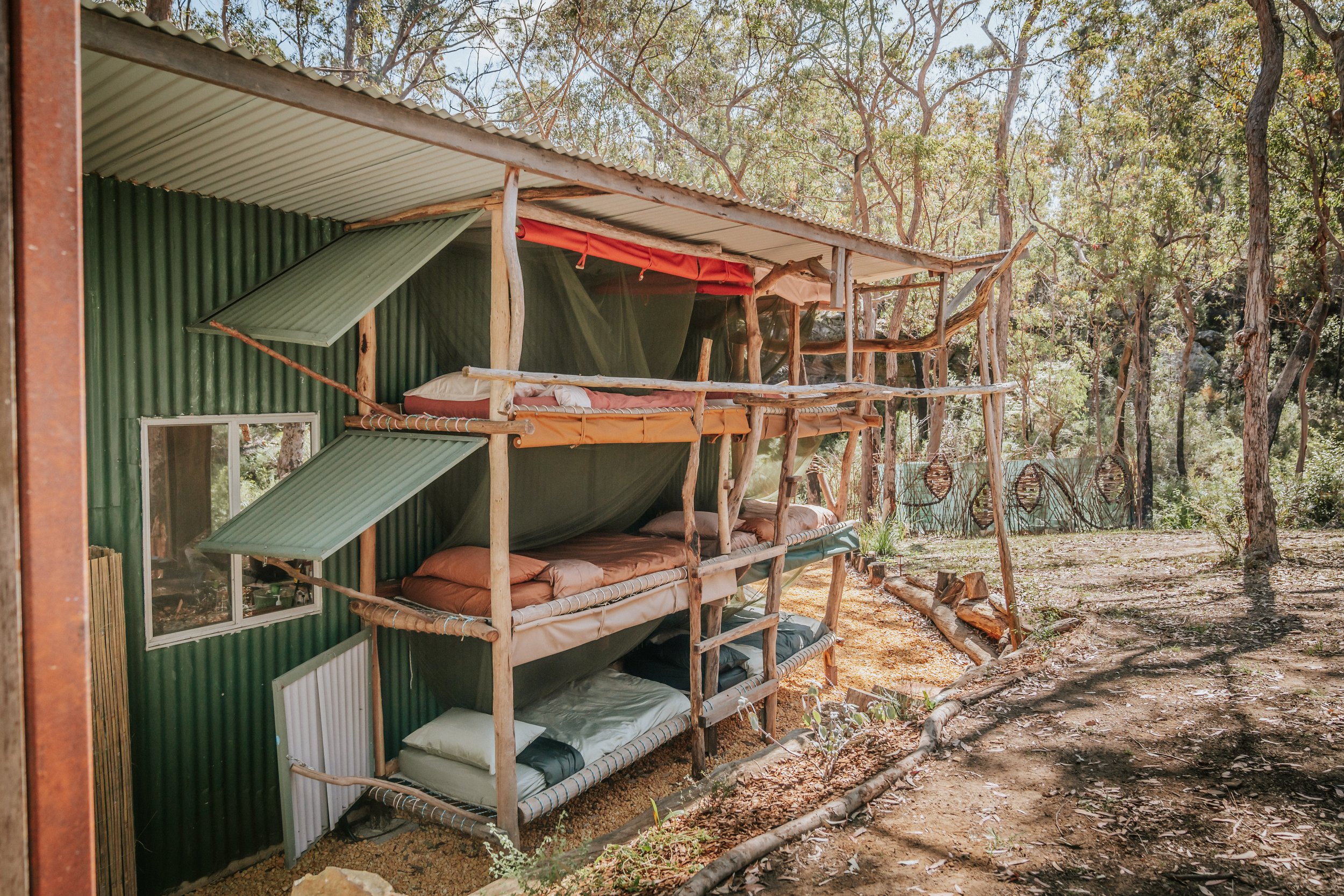 A snug open-air sleep space that keeps you close to the sounds and feel of the bush while still protected. A unique off-grid experience for guests who want something memorable, simple and deeply connected to nature.